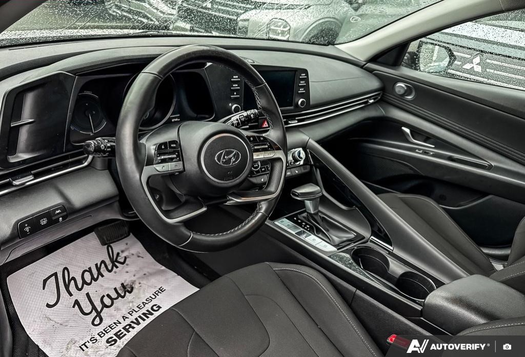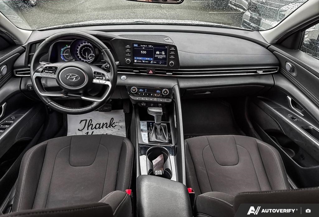 The 2021 Hyundai Elantra HEV Preferred (Canadian trim) is a hybrid sedan featuring a Atkinson-cycle engine and electric motor, producing a combined horsepower and of torque. It features a 6-speed EcoShift Dual Clutch Transmission (DCT) and is notable for high fuel efficiency, with ratings around combined